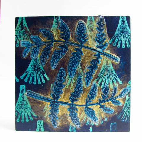 Fern - Mixed Media Collage Art Work on Wood Canvas